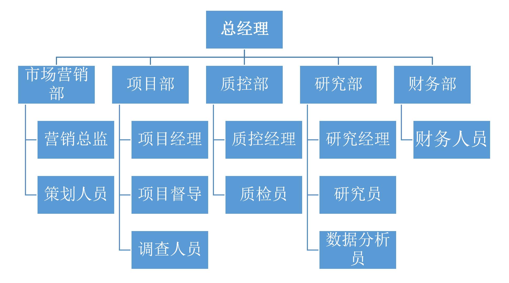 研究部:公司设有独立的研究部,有研究经理1名,研究员3名,数据分析员3名,均具有本科以上学历,涵盖社会学、统计学、管理学等专业,具有较强的数据分析能力和报告撰写能力。