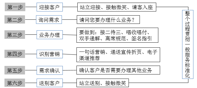 服务流程标准化改造主要针对大堂经理和柜员,具体改造措施分两步走: