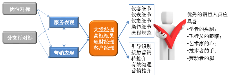 银行网点必须通过识别引导、接触营销、营销推介等方面的规范和提升,进一步做好客户关系的维护,提升客户对银行的满意度和美誉感,从而切实提升银行员工的服务营销能力和银行的市场竞争力。