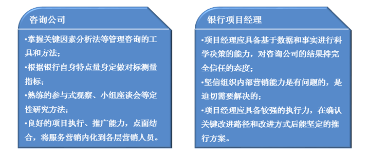 服务营销能力的提升是一个长期的持续性的过程,在这个过程中需要咨询公司和银行项目经理紧密的合作。